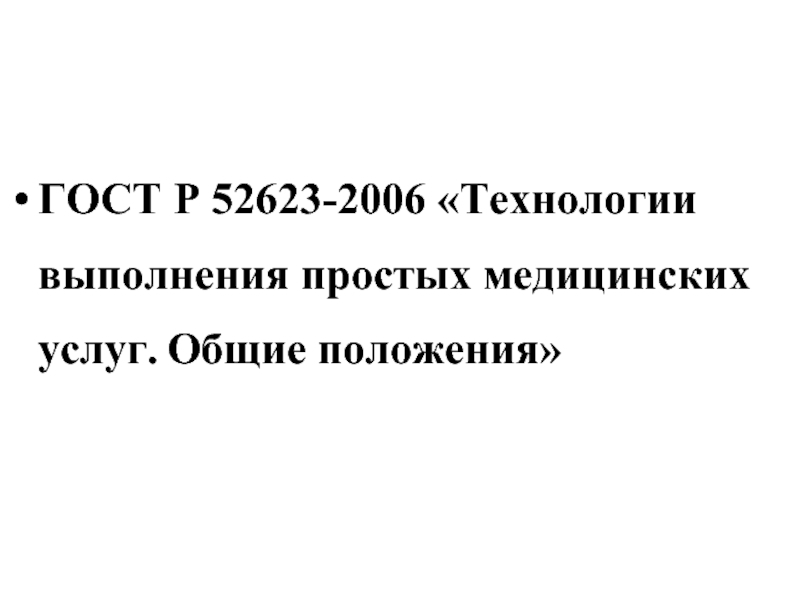 Слайд 84ГОСТ Р 52623-2006 «Технологии выполнения простых медицинских услуг. Общие положения»