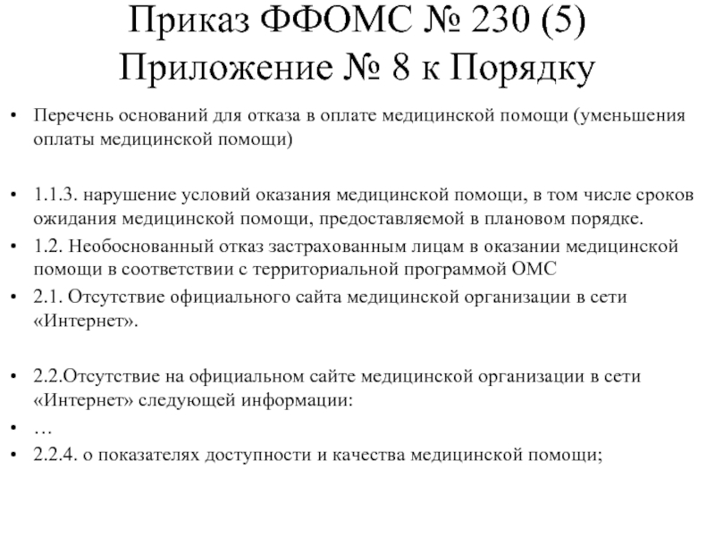 медицинской помощи ненадлежащего качества по договору на оказание и оплату медицинской помощи по обязательному медицинскому страхованию медицинская организация уплачивает страховой медицинской организации штраф в размере, устанавливаемом по указанному договору и в соответствии с перечнем оснований для отказа (уменьшения) оплаты медицинской помощи (приложение 8 к настоящему Порядку).