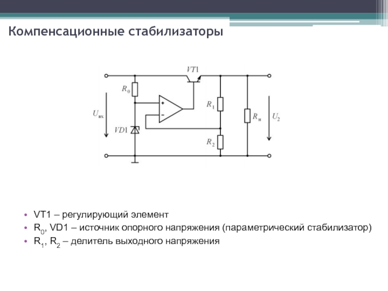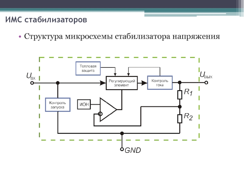 В схеме стабилизатора присутствует регулирующий элемент, который определяет, какая часть входного напряжения пройдет на выход