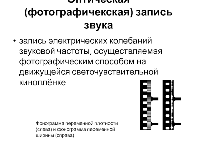 Фонограмма переменной плотности (слева) и фонограмма переменной ширины (справа)