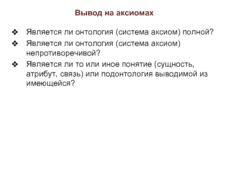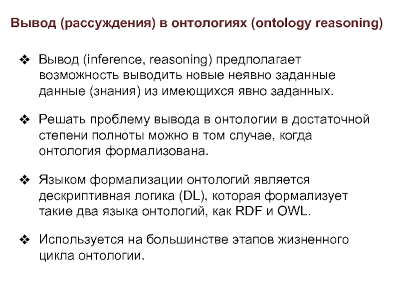 Слайд 64Вывод (рассуждения) в онтологиях (ontology reasoning)