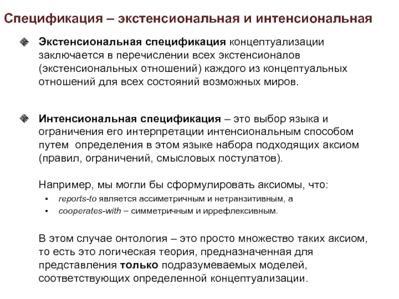 указанием характеристик, которым должен обладать индивид, чтобы являться экземпляром класса – интенсиональное определение класса.