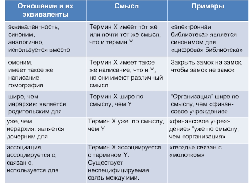Таксономические отношения также называются: