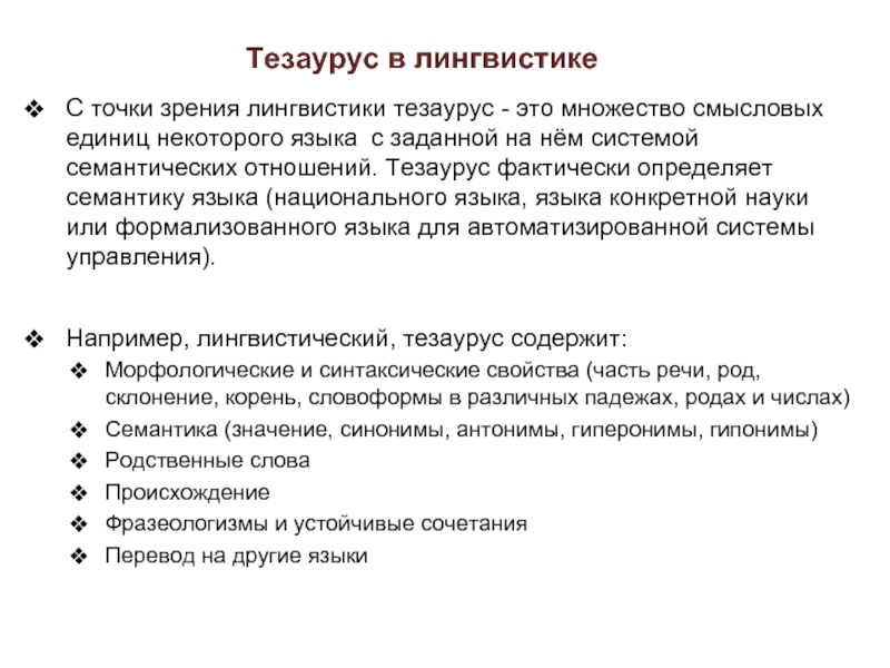 Слайд 24Тезаурус в лингвистике