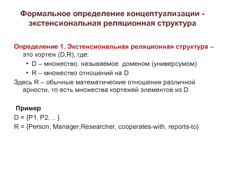 является последовательностью операций над уже определенными понятиями. Например, можно указать, что понятие ДЕД является композицией (транзитивным замыканием) понятия ОТЕЦ.