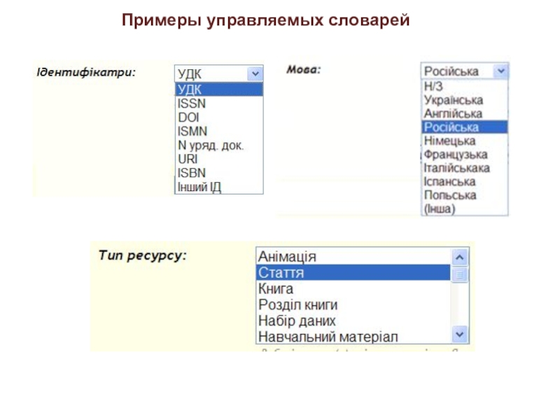 Слайд 13Управляемый словарь (Controlled Vocabulary)