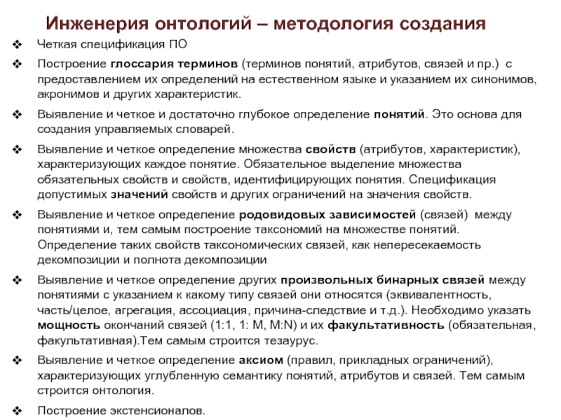 Используется на большинстве этапов жизненного цикла онтологии.