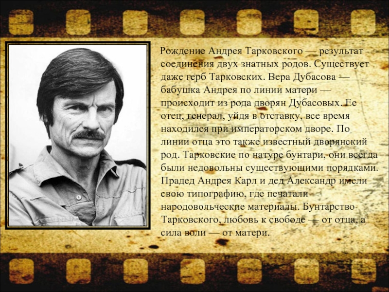 Слайд 3 Рождение Андрея Тарковского — результат соединения двух знатных