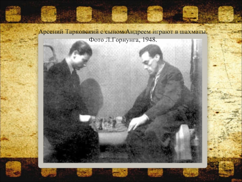 Слайд 6Арсений Тарковский с сыном Андреем играют в шахматы.