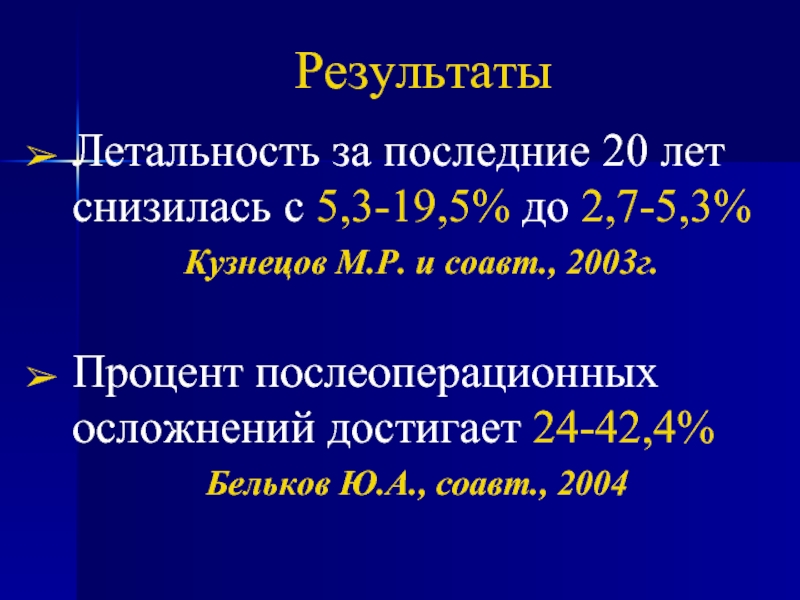 Тромбозы реконструируемых сосудов – 18,5-24,6%