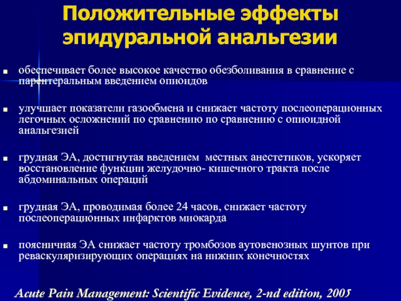 Acute Pain Management: Scientific Evidence, 2-nd edition, 2005