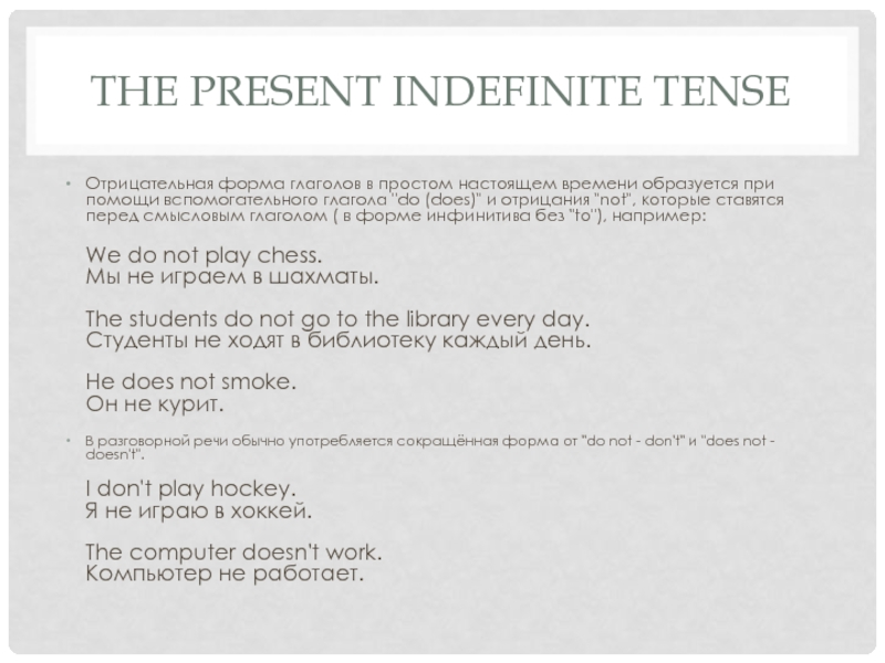 Отрицательная форма глаголов в простом настоящем времени образуется