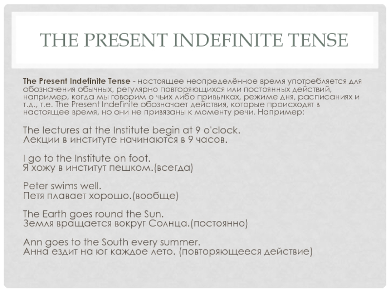 The Present Indefinite Tense - настоящее неопределённое время