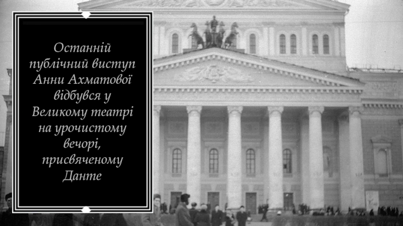 Останній публічний виступ Анни Ахматової відбувся у Великому театрі на урочистому