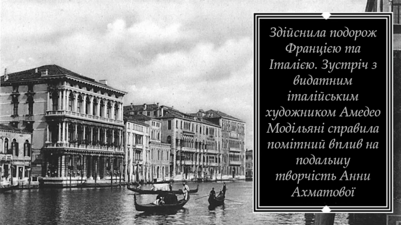 Здійснила подорож Францією та Італією. Зустріч з видатним італійським художником Амедео