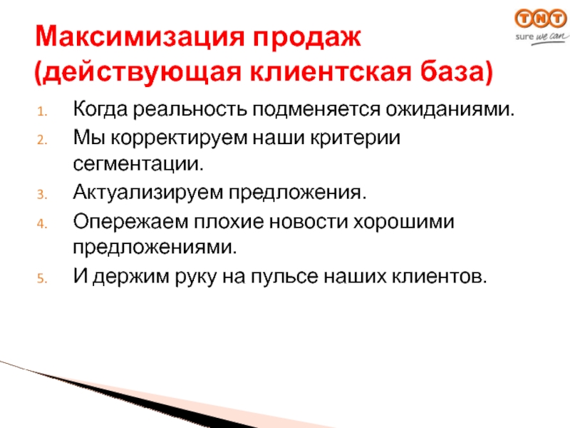 Максимизация продаж (действующая клиентская база)