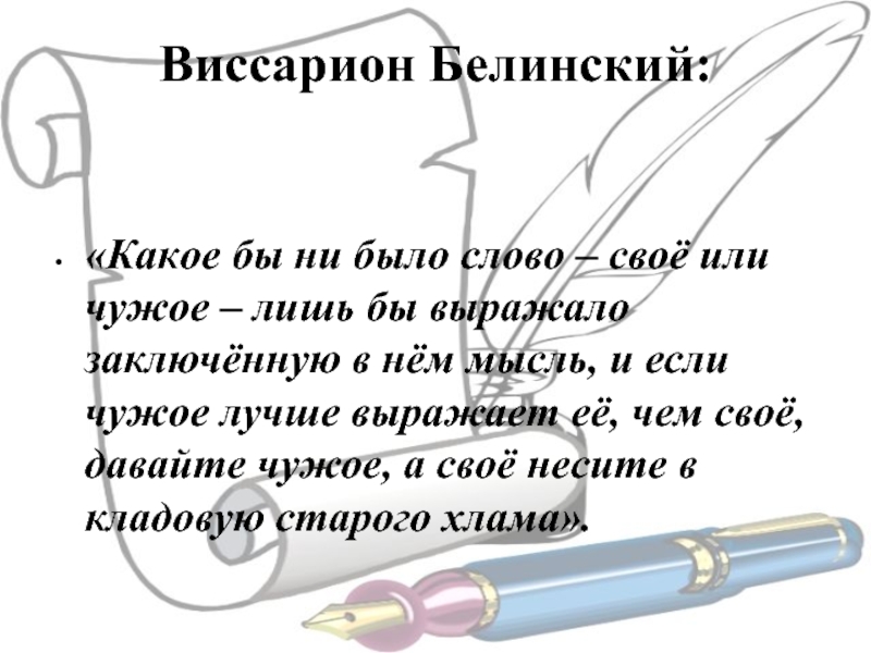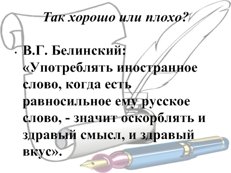 В.Г. Белинский: «Употреблять иностранное слово, когда есть равносильное