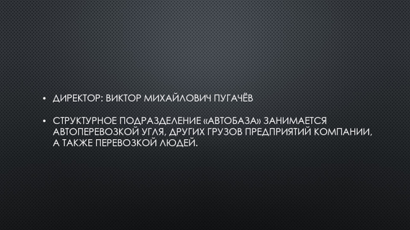 СТРУКТУРНОЕ ПОДРАЗДЕЛЕНИЕ «АВТОБАЗА» ЗАНИМАЕТСЯ АВТОПЕРЕВОЗКОЙ УГЛЯ, ДРУГИХ ГРУЗОВ
