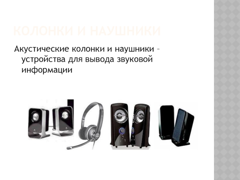 Слайд 8КОЛОНКИ И НАУШНИКИ
