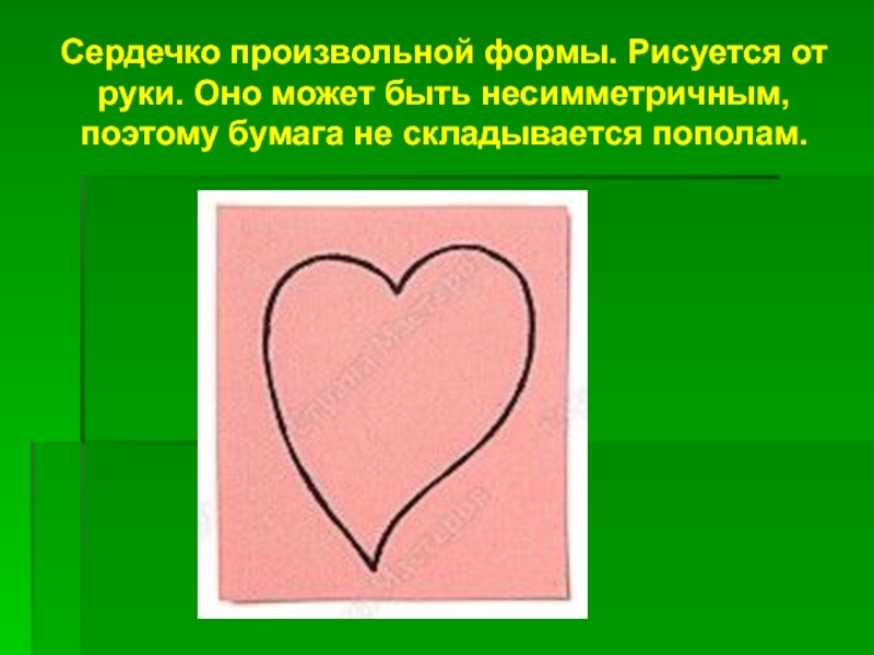Слайд 5Сердечко произвольной формы. Рисуется от руки. Оно может быть несимметричным, поэтому