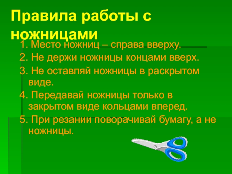 Слайд 9Правила работы с ножницами