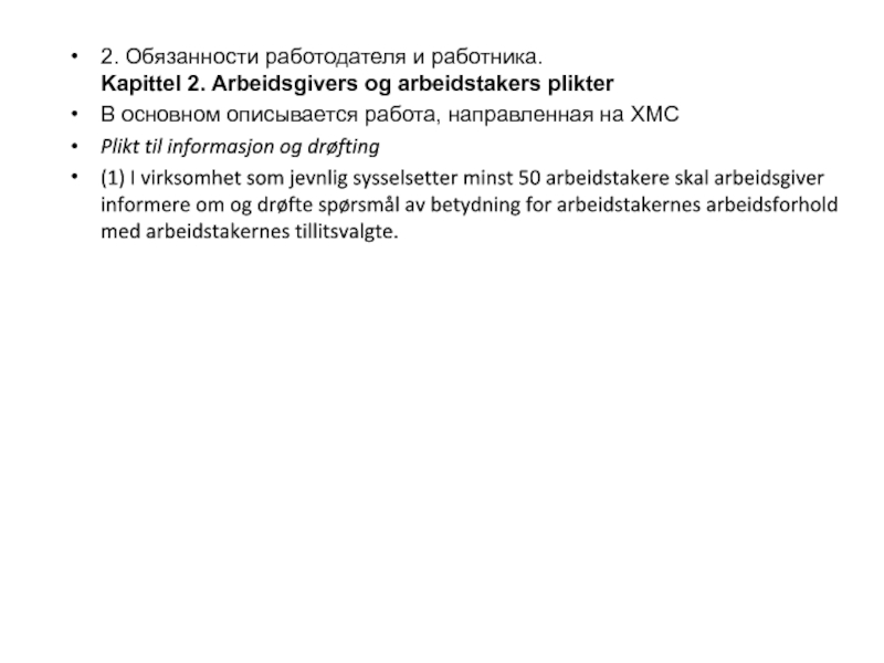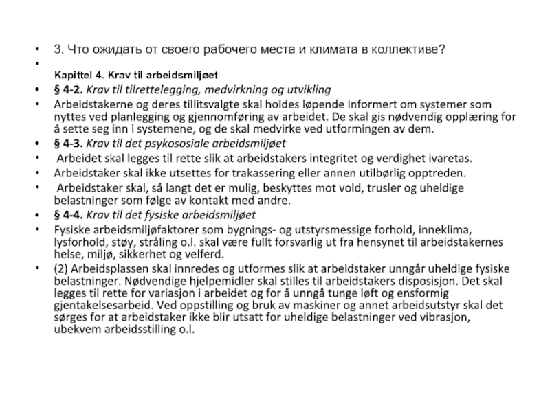 Omsorgsplikt –забота о работниках /соблюдение выполнения условий контракта+hms/
