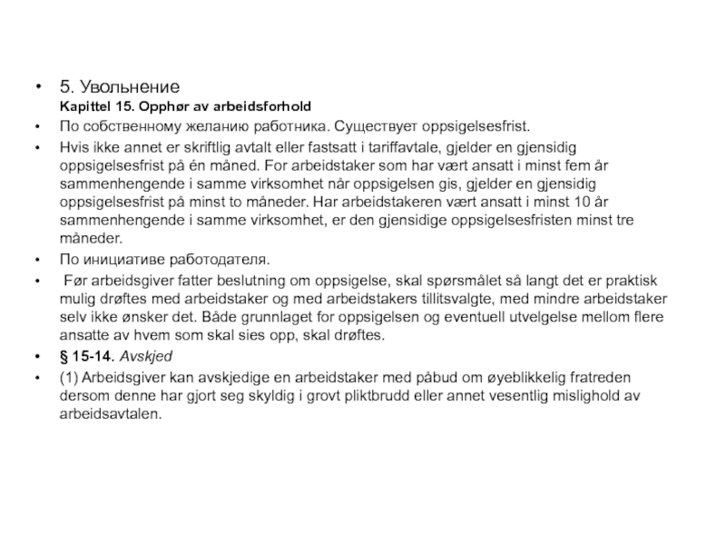 По собственному желанию работника. Существует oppsigelsesfrist.