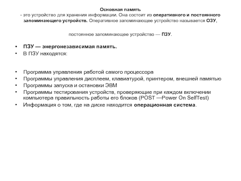 ПЗУ — энергонезависимая память.