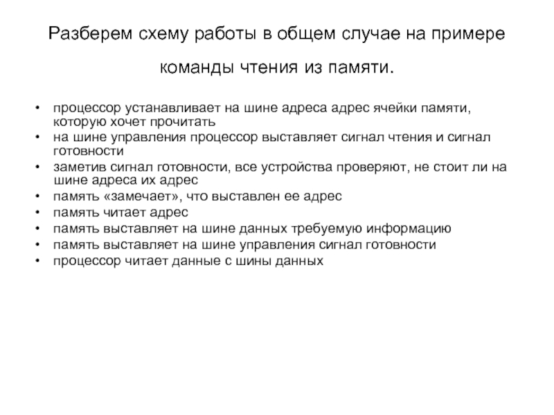 процессор устанавливает на шине адреса адрес ячейки памяти, которую хочет прочитать