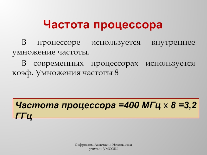 Частота процессора =400 МГц x 8 =3,2 ГГц