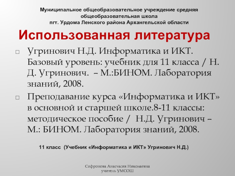 11 класс (Учебник «Информатика и ИКТ» Угринович Н.Д.)