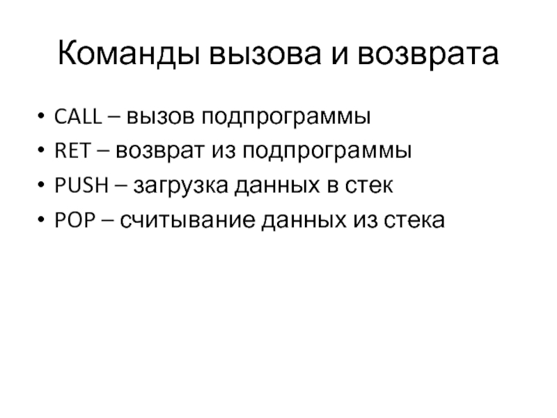 Слайд 17Команды вызова и возврата