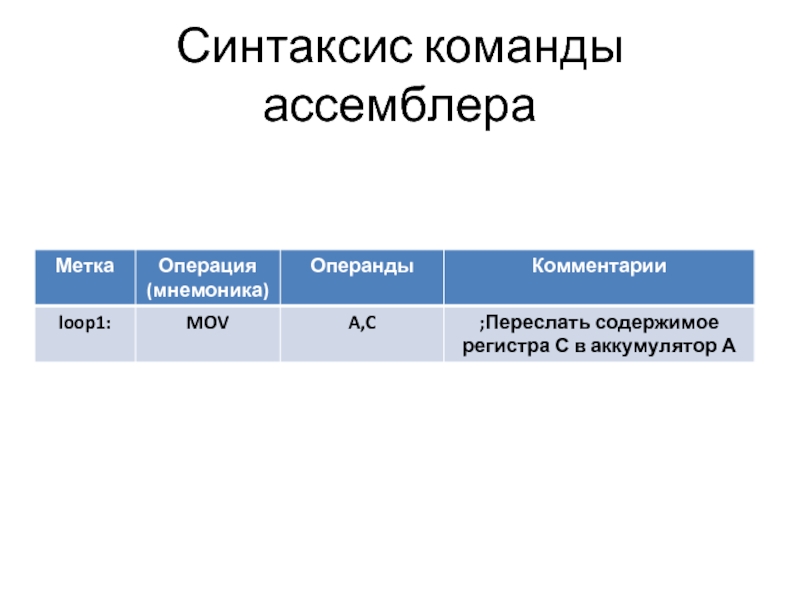 Слайд 5Синтаксис команды ассемблера