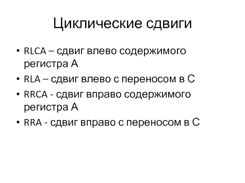 Команды циклических сдвигов;