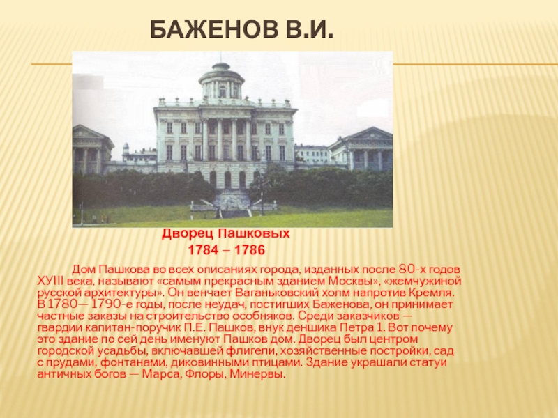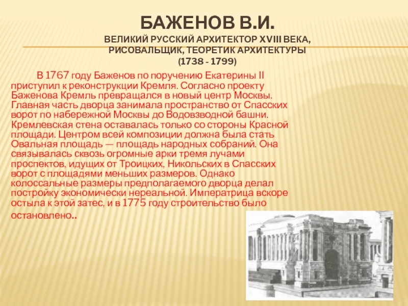Постройки Кваренги отличаются ясностью планировочных решений, простотой и четкостью композиций, монументальной пластичностью форм, которая достигается введением торжественных колоннад, выделяющихся на фоне гладких поверхностей стен. Кваренги привнес в русское зодчество высшие достижения западной, итальянской архитектуры и свою горячую приверженность приемам А. Палладио.