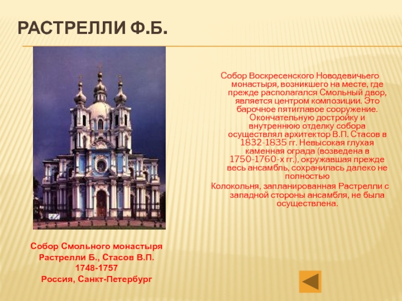 Один из художественных стилей конца XVI середины XVIII веков, тяготевший к парадной торжественности, декоративности, напряжённости и динамичности образов. Для барокко характерно тяготение к ансамблю и синтезу искусств.