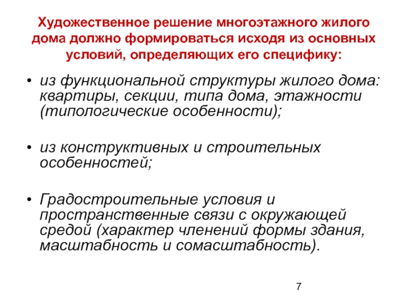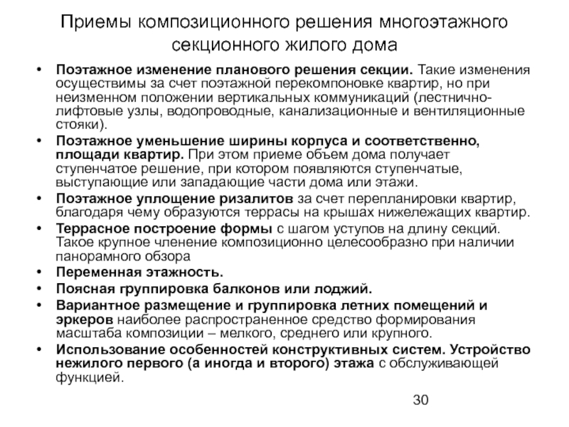 из функциональной структуры жилого дома: квартиры, секции, типа дома, этажности (типологические особенности);