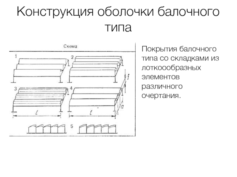 Покрытия балочного типа со складками из лоткоообразных элементов