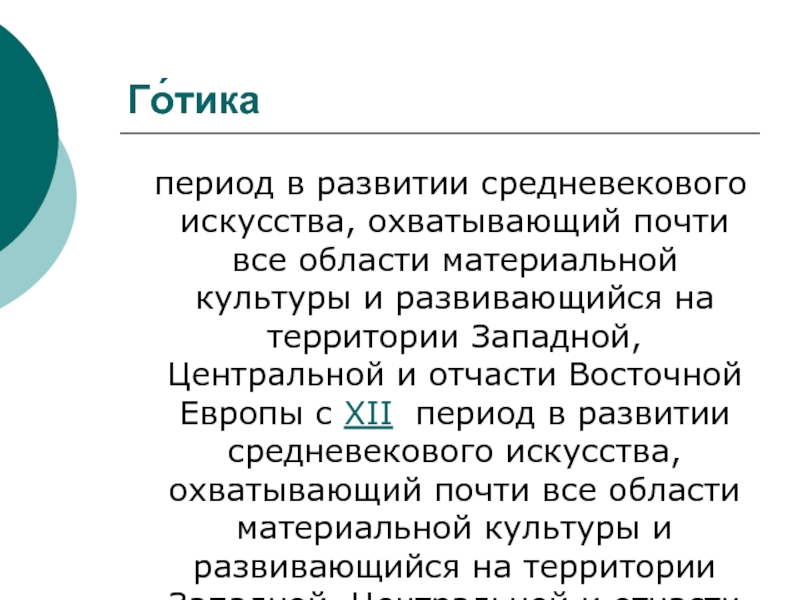 материальной культуры и развивающийся на территории Западной, Центральной и отчасти Восточной Европы с XII период в развитии средневекового искусства, охватывающий почти все области материальной культуры и развивающийся на территории Западной, Центральной и отчасти Восточной Европы с XII по XV век.