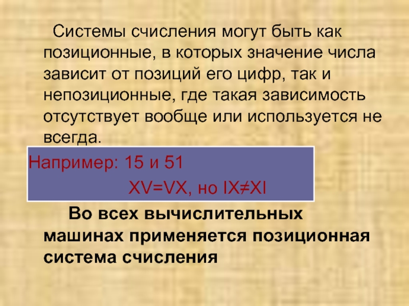 Системы счисления могут быть как позиционные, в которых