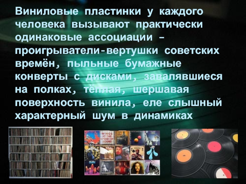 Слайд 2Виниловые пластинки у каждого человека вызывают практически одинаковые ассоциации – проигрыватели-вертушки