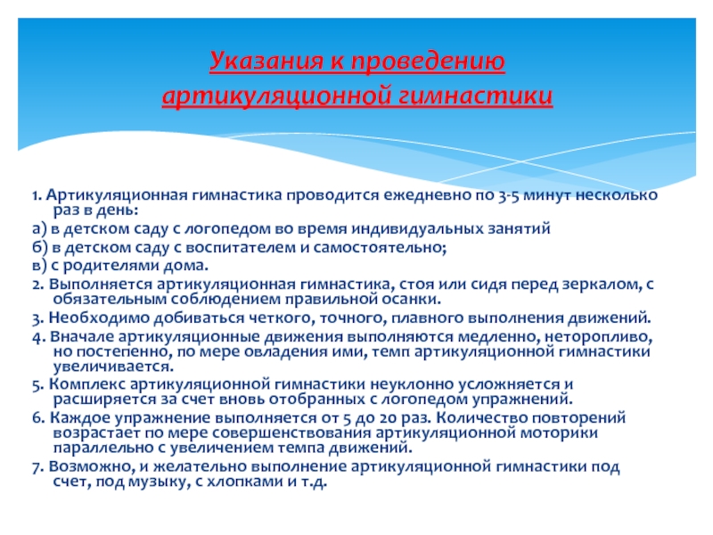 артикуляционной гимнастики