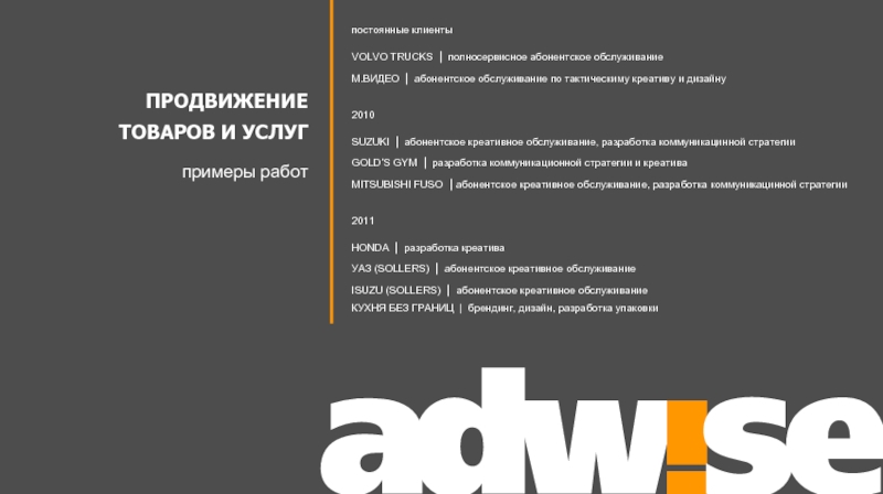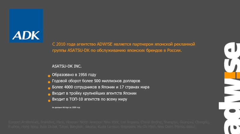 С 2010 года агентство ADW!SE является партнером японской рекламной