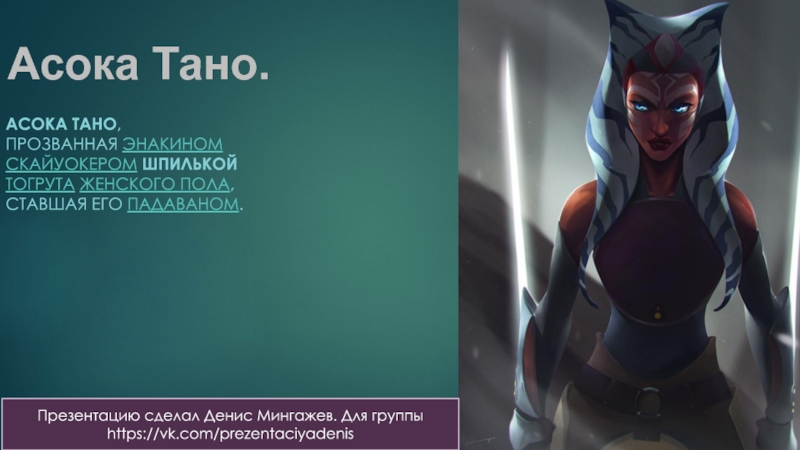 АСОКА ТАНО, ПРОЗВАННАЯ ЭНАКИНОМ СКАЙУОКЕРОМ ШПИЛЬКОЙ ТОГРУТА ЖЕНСКОГО ПОЛА, СТАВШАЯ ЕГО ПАДАВАНОМ.