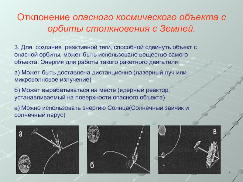 1. Исследовать современные научные данные по данной проблеме и сравнить наиболее значимые способы защиты от опасных небесных тел.