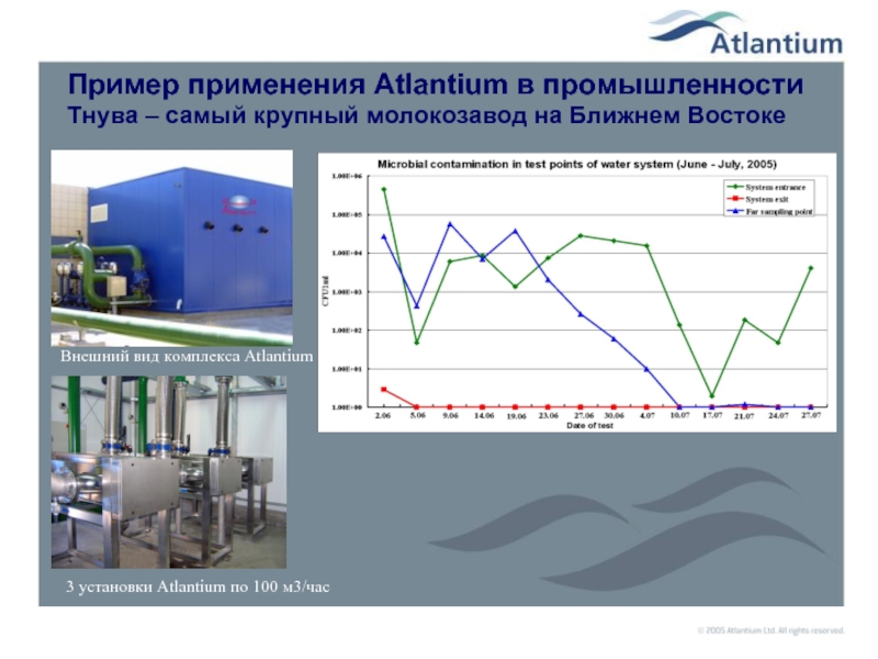3 установки Atlantium по 100 м3/час