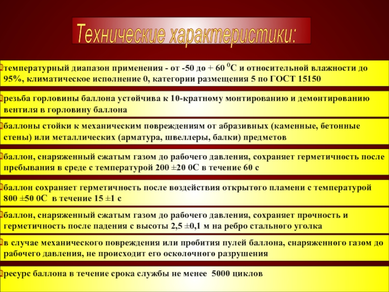 ресурс баллона в течение срока службы не менее 5000 циклов