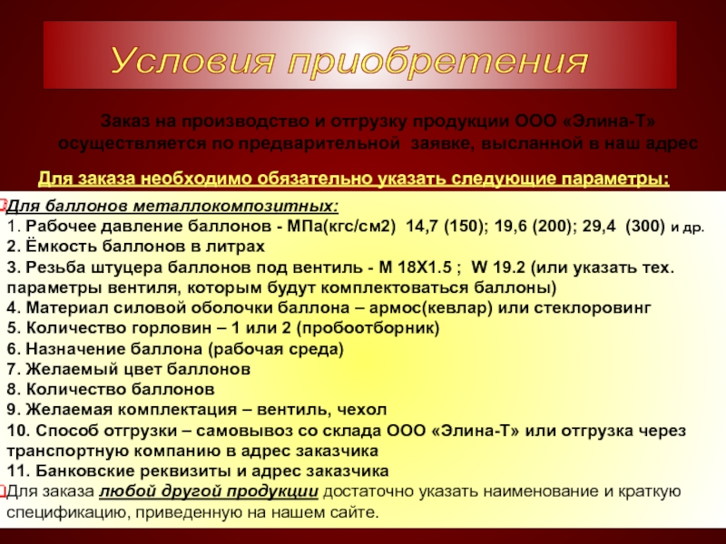 Наши производственные мощности и технология позволяют производить баллоны любой вместимости с необходимым рабочим давлением, предназначенные для хранения и использования самых различных газов и газовых смесей.