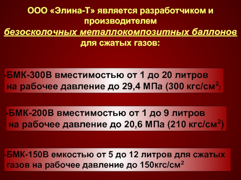 БМК-150В емкостью от 5 до 12 литров для сжатых газов на рабочее давление до 150кгс/см2