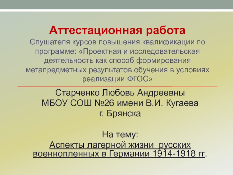 Аспекты лагерной жизни русских военнопленных в Германии 1914-1918 гг.